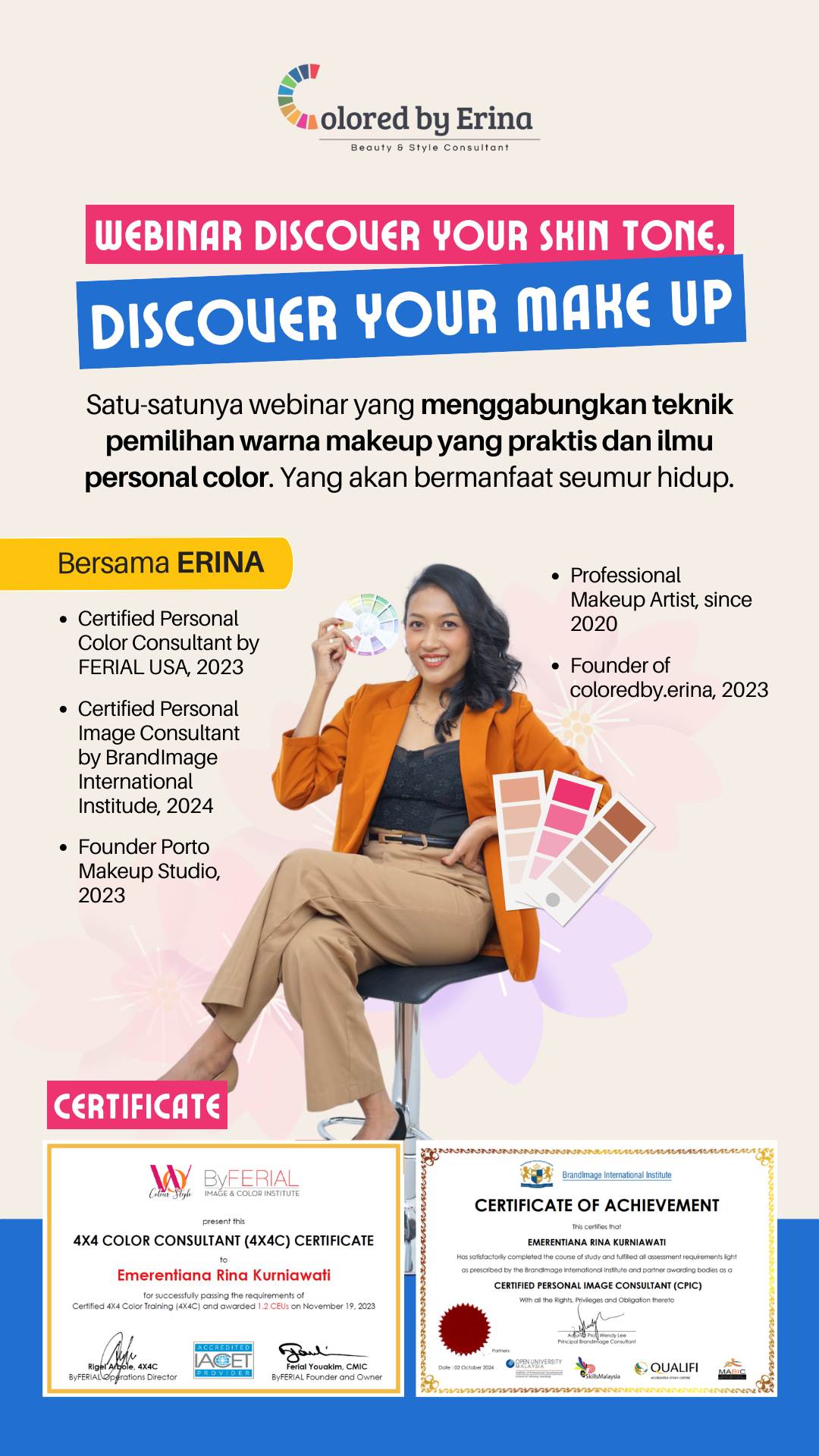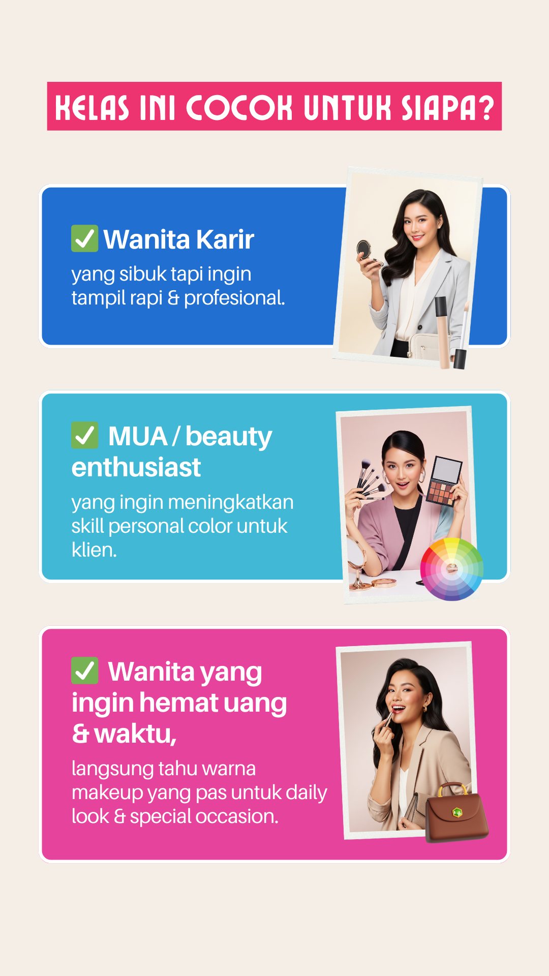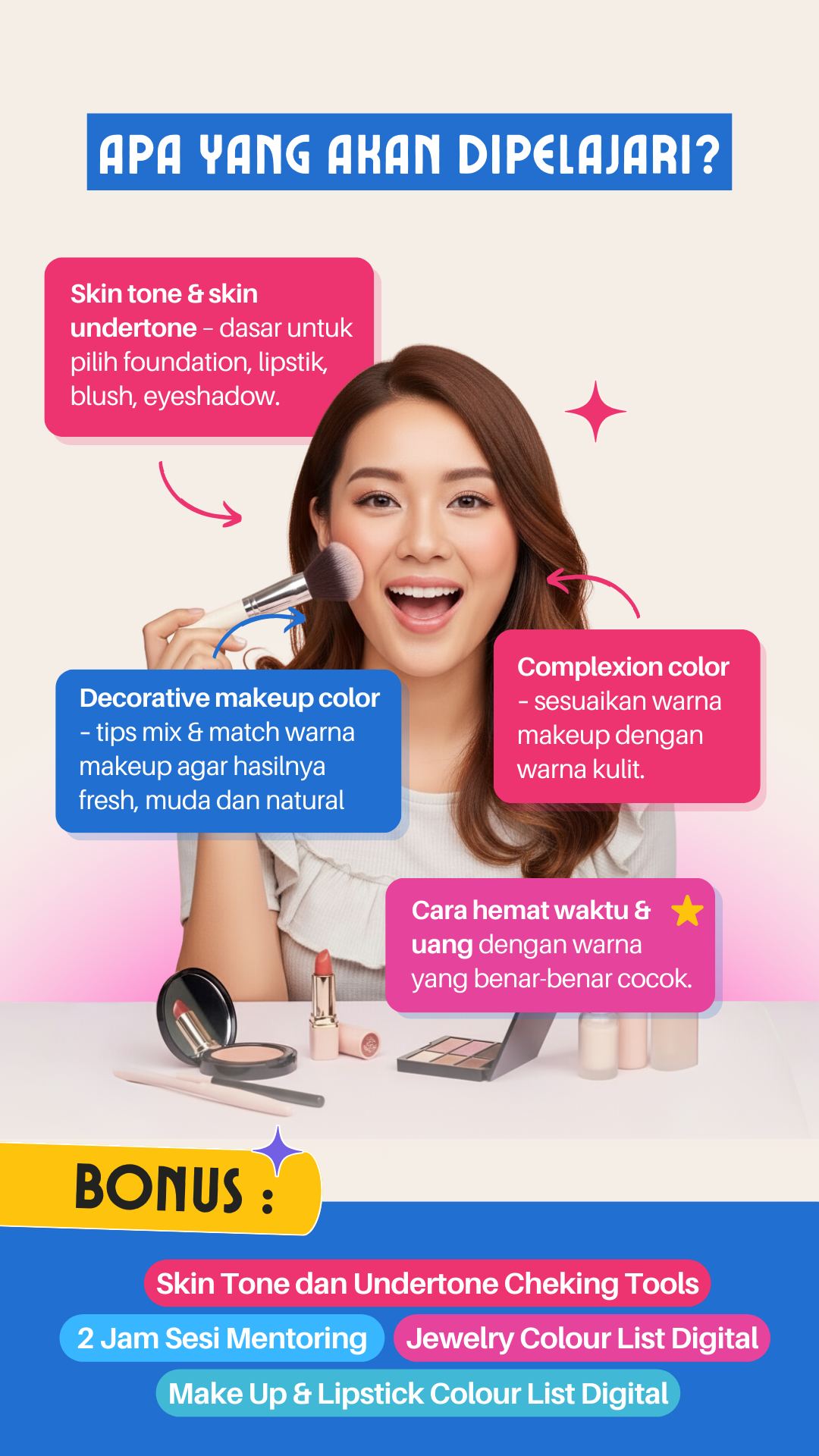 Webinar ini bukan sekadar kelas makeup, tapi solusi praktis untuk berhenti salah shade dan mulai tampil pede dengan warna yang bener-bener cocok sama kulitmu.